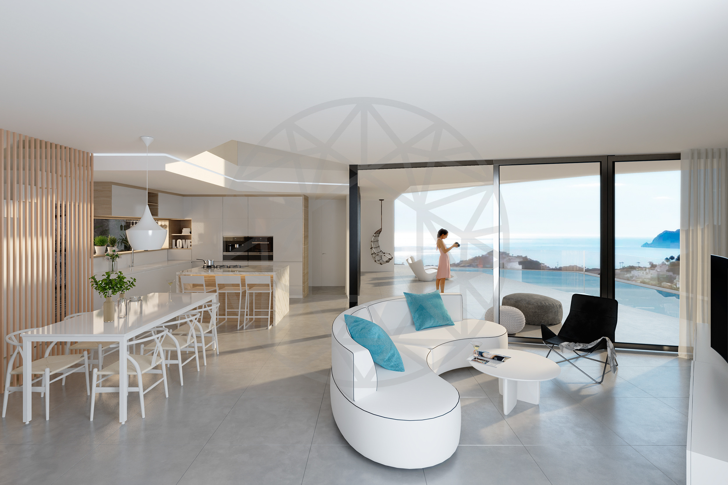 Nieuw gebouwde villa te koop in Benitachell, in de urbanisatie Vall del Portet, gelegen in een bevoorrechte omgeving met uitstekende verbindingen naar het historische centrum, een centrale ligging en gemakkelijke toegang tot de naburige steden Moraira, Jávea en Teulada. Het beschikt ook over een kustlijn van bijna 3 Km met indrukwekkende kliffen en afgelegen baaien. Deze moderne woning maakt deel uit van een exclusief privécomplex, waar luxe en elegantie samenkomen om droomhuizen te creëren die speciaal voor u zijn ontworpen. Geniet van een prachtig uitzicht op zee, de Peñón de Ifach (symbool van de Costa Blanca), rust en de hele dag zon (Zuidoriëntatie). Het heeft een totale bebouwde oppervlakte van 290 m2 verdeeld over 2 verdiepingen en een kelder, als volgt: op de begane grond hebben we een inkomhall (10 m2), 1 gastentoilet, wasruimte, 1 slaapkamer (15 m2) met een en-suite dressing en toegang tot het buitenterras, 1 complete badkamer en-suite en een fantastische woonkamer-eetkamer-keuken (samen 54 m2, open concept), die in verbinding staat met een veranda (28 m2) die op zijn beurt overgaat in een groot buitenterras (69 m2), waar we een zwembad, een barbecue en een chill-outruimte hebben. Op de bovenverdieping hebben we een hal, 2 slaapkamers (16 m2 + 12 m2) met hun en-suite dressing en toegang tot een privéterras en 2 en-suite badkamers. In de kelder hebben we een hal en een garage (29 m2) met directe toegang tot het pand. Het is voorzien van vloerverwarming (lucht-water warmtepompsysteem, minimaal verbruik, maximaal rendement), airconditioning (individueel in elke kamer), een ventilatiesysteem, een audiosysteem, een fotovoltaïsch systeem, hoogwaardig buitenschrijnwerk, design binnenschrijnwerk, een volledig uitgeruste moderne keuken, design badkamers en meer. Het beschikt ook over een grote pergola (21 m2) voor een parkeerplaats. De tuin is prachtig en onderhoudsarm. Deze avant-gardistische woning onderscheidt zich door het ontwerp, de lichte ruimtes, de rust en het prachtige uitzicht op zee.